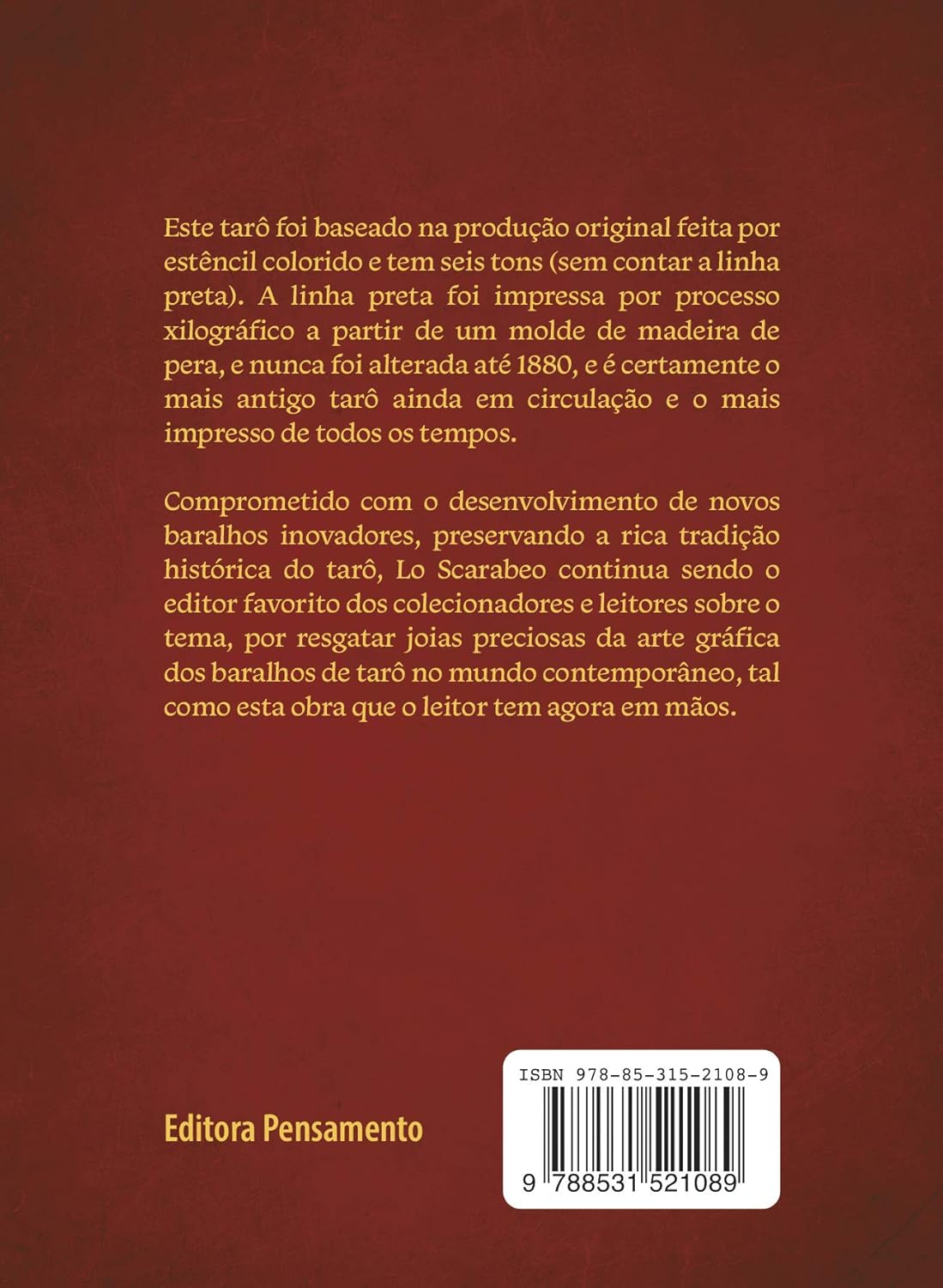 O Antigo Tarô de Marselha foi produzido originalmente em Marselha, no sul da França, a partir de 1760. Projetado por Conver e seus descendentes, este baralho entrou para a história após inúmeras reimpressões serem comercializadas em Marselha por mais de cem anos, o que o torna um verdadeiro item de colecionador para os interessados nesta antiga arte divinatória. Com textos de Lo Scarabeo e colaboração de Zilda H. S. Silva, esta edição foi feita a partir de uma cópia de 1870 de um colecionador particular do tarô de Nicolas Conver, a qual apresenta matizes mais vivos; especialmente no que diz respeito ao amarelo e verde, que é diferente do modelo de 1760, que é diferente do modelo de 1760 que se encontra hoje preservada na Biblioteca Nacional da França, tratando-se então de uma “cópia fiel”, e talvez o único e verdadeiro “Tarô de Conver” ainda existente em nossos dias.