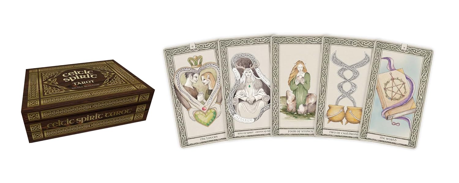 Celtic Spirit Tarot is a tarot deck designed for a new era. It combines the traditional imagery of the Rider-Waite deck with a fresh perspective. This deck features an additional suit representing the Spirit element, the fifth point on the pentagram. The Spirit element symbolizes the soul, the universe, and the energy that animates all life-an energy we return to after death. This deck serves as a reminder that everything is interconnected, that greater forces are at work, and that guidance and insight from the Otherworlds are accessible to us. Step into a new age of tarot reading and unlock your intuition with every card. This tarot is born from artist/author Nicola McIntosh’s Celtic shamanic work and her Celtic lineage. The Celts had a deep understanding of nature’s cycles and the importance of working with nature and its Elemental beings, which is evident in their artwork, myths and legends.