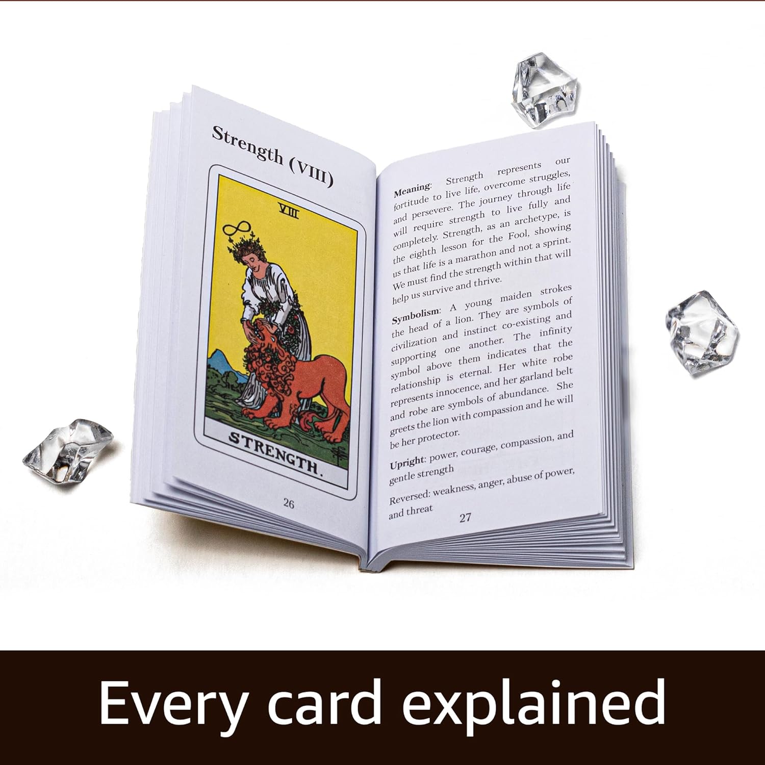 Includes 86-page guidebook with upright and reversed card meanings, 3-card spread explained, helpful tips for beginners