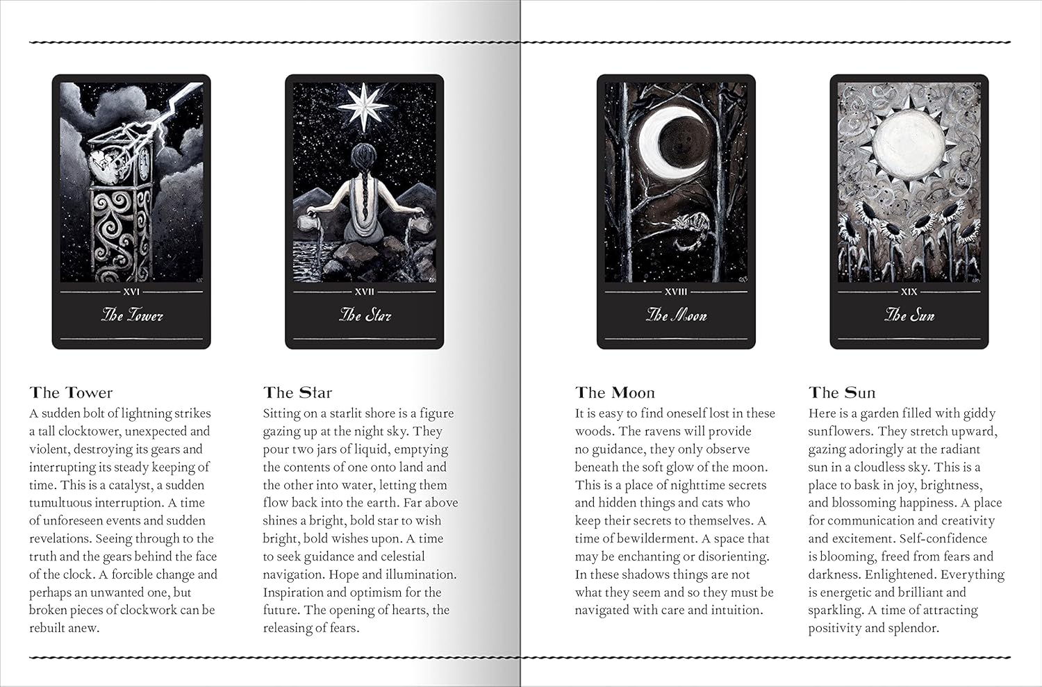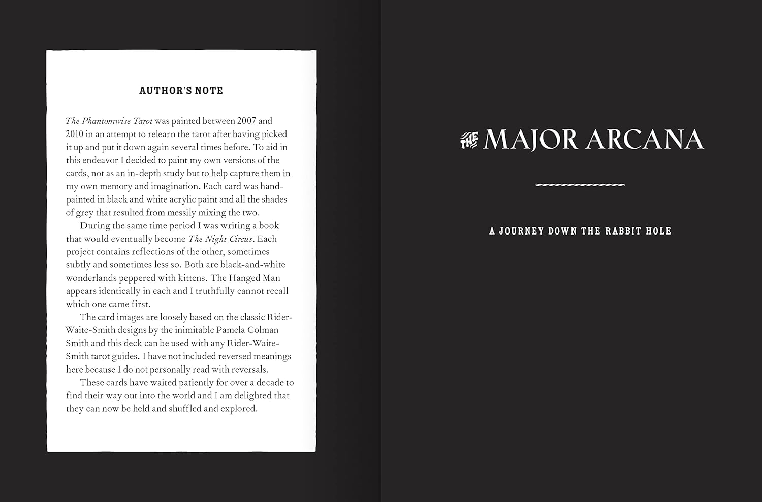 Quando Erin Morgenstern estava trabalhando em seu best-seller internacional O Circo da Noite, ela iniciou um exercício criativo para entender melhor as complexidades do tarô. Esta série de pinturas captura os temas de cada uma das 78 cartas de um baralho de tarô Rider-Waite-Smith tradicional com doses iguais de fantasia e mistério. Figuras arquetípicas como O Louco, O Hierofante e Os Amantes emergem de céus escuros e nuvens rodopiantes. Os corvos podem não ser o que parecem. Os gatos sabem mais do que jamais revelarão. O guia que acompanha o baralho oferece interpretações das cartas e sugestões de tiragens para leituras de tarô, tanto para iniciantes quanto para leitores experientes.