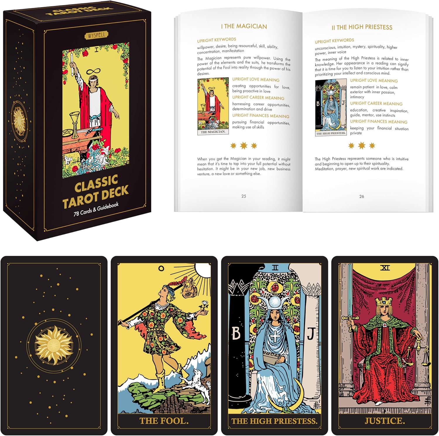 Arte Aprimorada: Ilustrações remasterizadas baseadas no baralho de tarô tradicional, proporcionando visuais vibrantes e nítidos. Cores sólidas e detalhes refinados tornam cada carta de tarô fácil de interpretar, tornando-o o tarô perfeito para iniciantes.